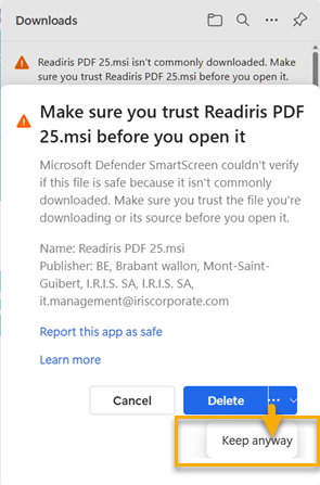 - A confirmation window will appear. Click Show more (arrow icon) and select Keep anyway.
