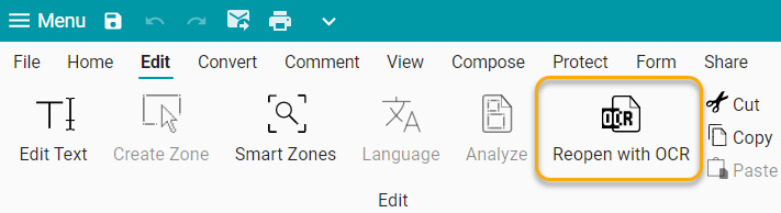 In alcuni casi, un particolare PDF può avere una stratificazione insolita di testo e immagini e produrre risultati scadenti. In tal caso, vai alla scheda Modifica e fai clic su Riapri con OCR.