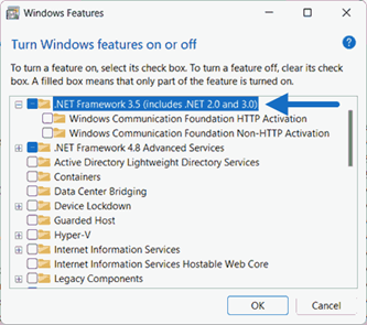 - Selezionare la casella ".NET Framework 3.5 (include .NET 2.0 e 3.0)".
